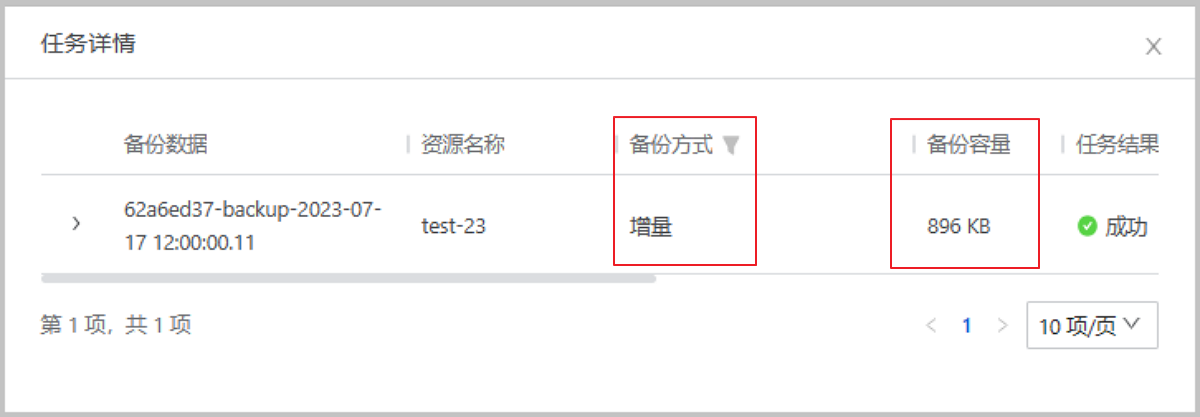 新增备份方式和备份容量字段,提供更详细的备份信息
