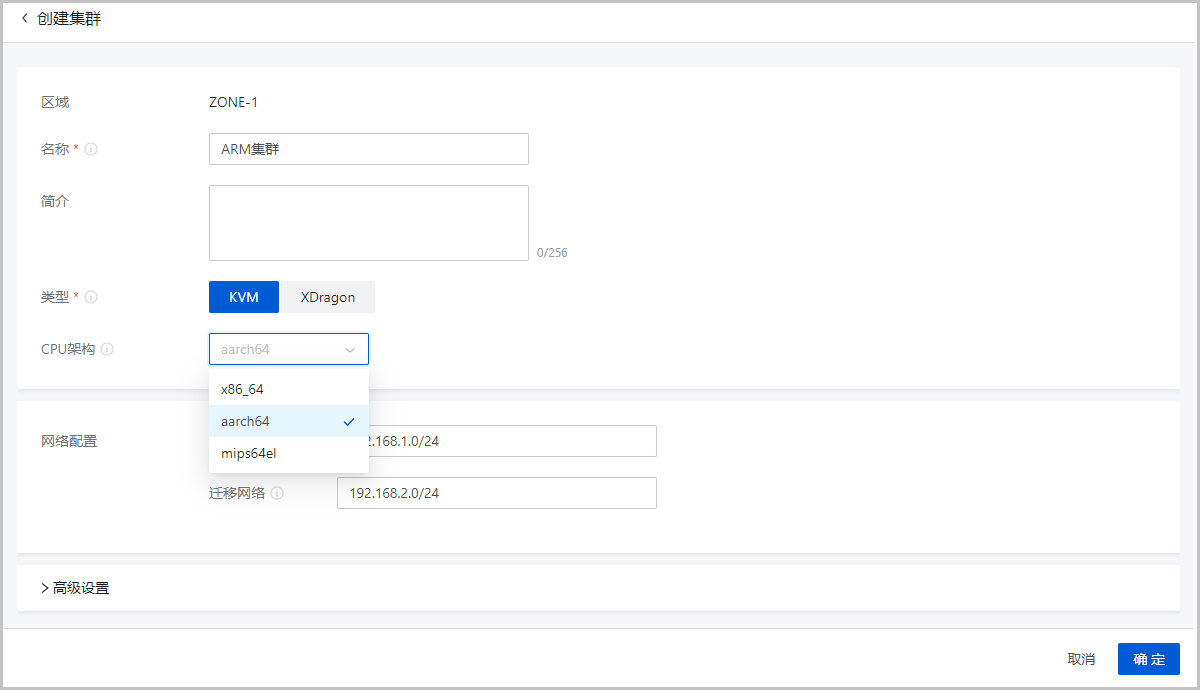 在实际业务场景中,用户会使用到多种CPU架构的硬件设备,统一管控较为困难。ZStack Cloud 4.2.0新增支持异构集群管理功能,一朵云即可添加多种CPU架构的集群,满足企业多种硬件设备的异构需求。