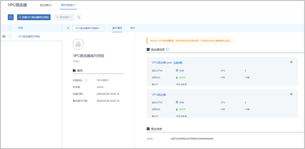 图 1. VPC路由器高可用组