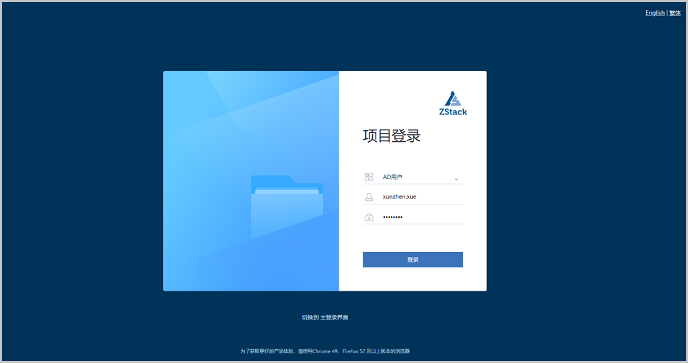 同本地用户一样,导入的AD用户需从项目登录入口登录云平台,如图 3所示: