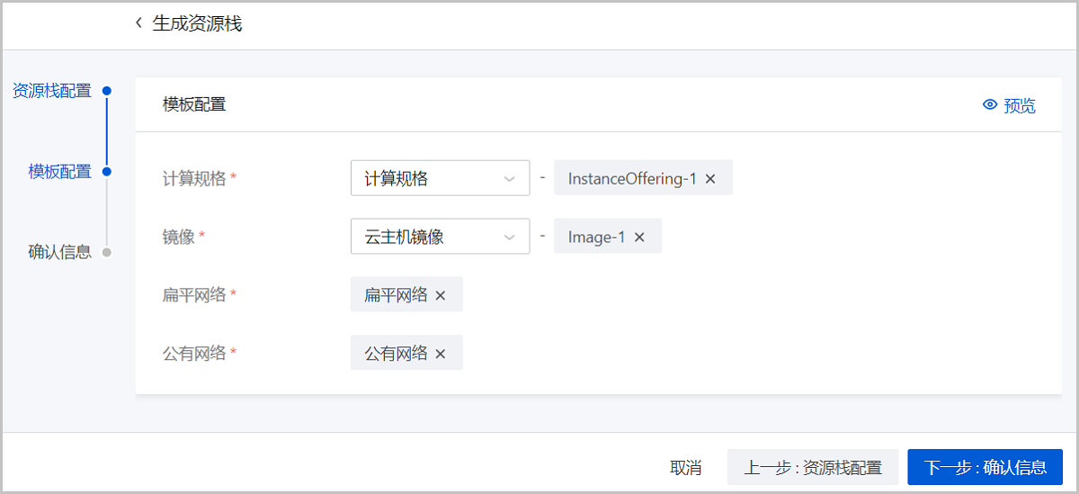 API实现。查看将要创建的资源栈,支持跳转修改。