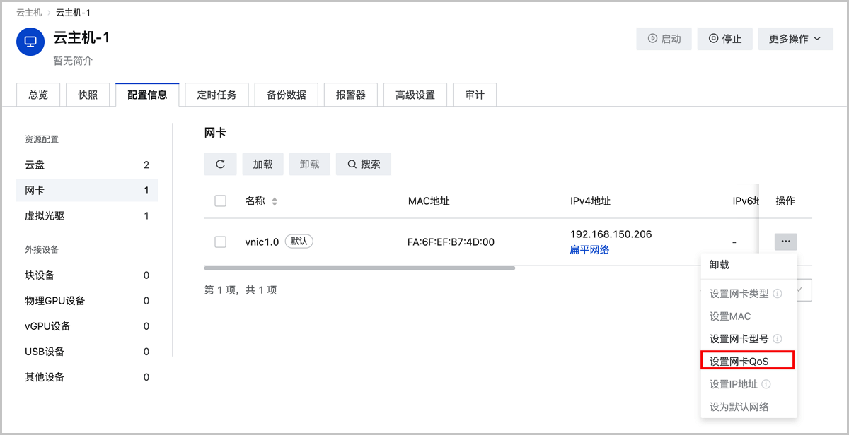 至此,网卡设置QoS已介绍完毕。更多关于网卡的说明请参考《用户手册》的云主机相关章节。