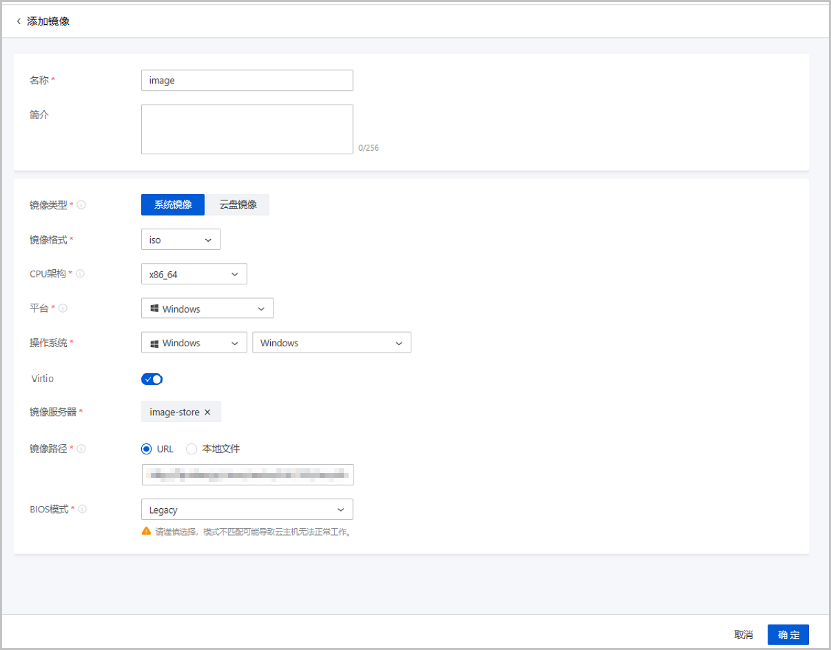 将Windows Server 2008 R2镜像添加到ZStack Cloud镜像列表,为安装操作系统使用。